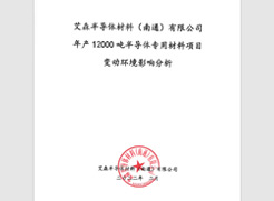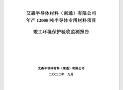 艾森半導體材料(南通)有限公司年產12000噸半導體專用材料項目變動環境影響分析報告公示